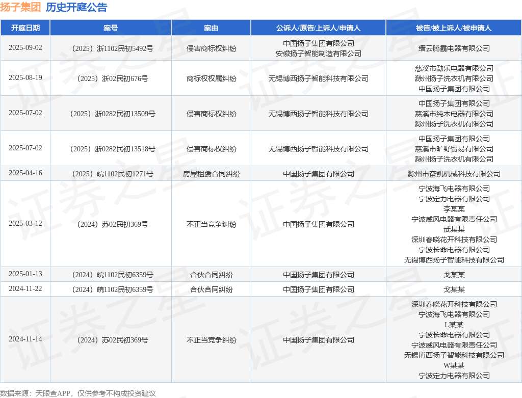 扬子集团作为原告/上诉人的1起涉及侵害商标权纠纷的诉讼将于2025年9月2日开庭